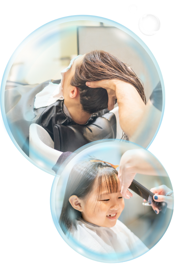 カットが苦手なお子様も、遊び感覚で楽しく。一生の思い出になるファーストカットも、心を込めてお手伝いします。