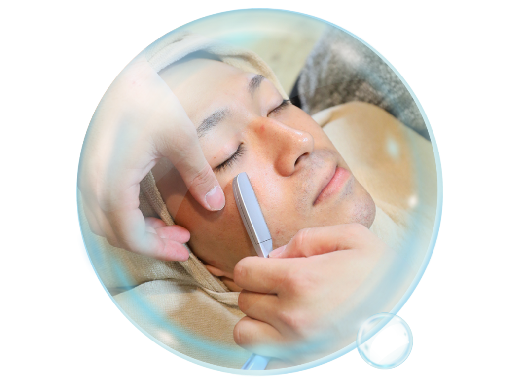 理容室ならではの技術で、古い角質を優しくクレンジング。化粧水パックをセットにした贅沢なコースです。男性の身だしなみはもちろん、肌がトーンアップする快感をぜひ体験してください。